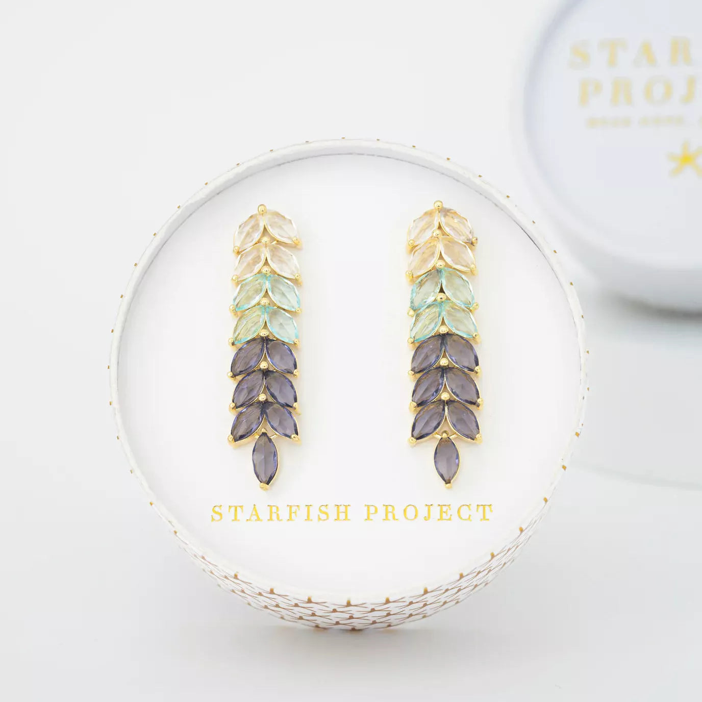 A breathtaking fusion of light and shadow, the Eclipse Chandelier Earrings capture the magic of the shifting hues of an eclipse. These stunning 14K gold plated earrings feature a cascading array of shimmering crystals, gracefully blending from golden light to deep, mysterious midnight (we are head over heels for the light-catching blue!). Designed to make a statement, they’re perfect for elevating an evening look or adding celestial elegance to your everyday style. With every purchase, you help create a new beginning for women building brighter futures through Starfish Project. Wear the Eclipse Chandelier Earrings as a symbol of transformation, resilience, and the beauty of second chances.