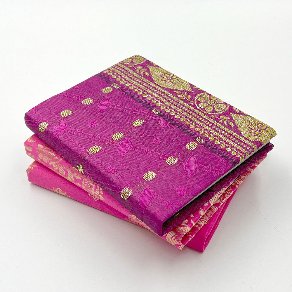Capture your thoughts and memories in our beautifully crafted Silk Sari Journal. This beautiful book is more than just a book - it's a statement. Hand-bound with eco-friendly materials and adorned with vintage sari, it tells the story of a woman's dignity and self-worth. By owning this unique book, you become part of her story, making a bold statement about sustainability and empowerment.