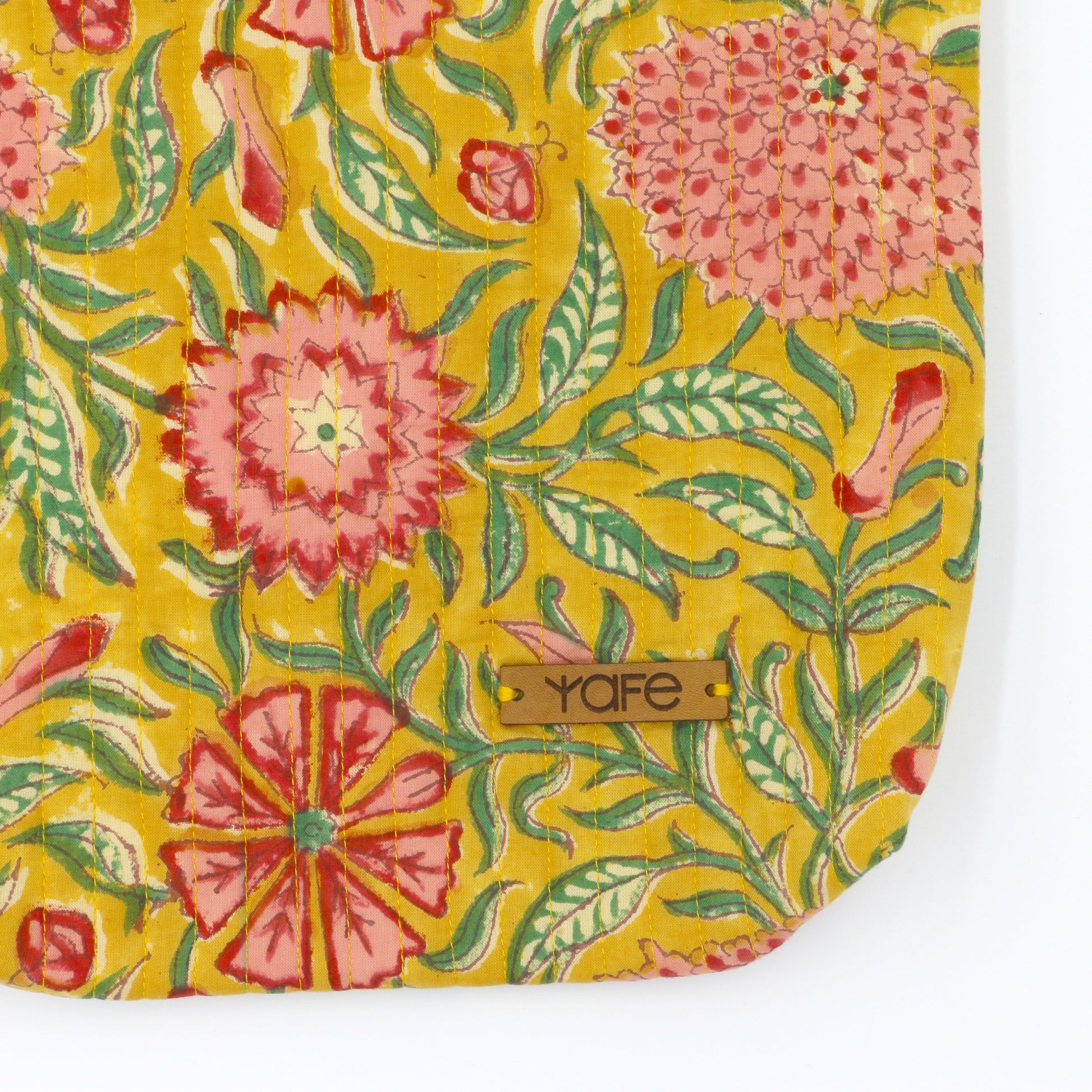Crafted from the finest block hand-printed cotton in Jaipur, India, our handbag is a blend of breathability, strength, and softness. It's not just a bag; it's a beautiful statement reflecting the skillful hands behind its creation.